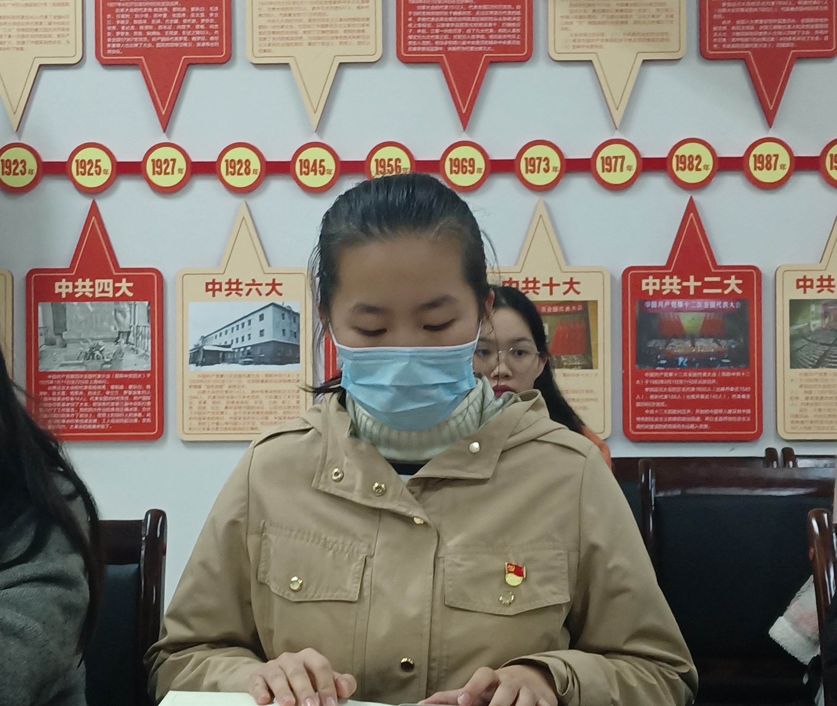 会上,叶佳惠同志领学了《中国共产党党徽党旗条例》第一条至第十条的主要内容。胡浩然同志领学了《中国共产党党徽党旗条例》中第十一条至第二十四条的主要内容。随后,大家结合两个学习视频进一步加深对党旗的演进过程、党旗的组成、使用规格、使用范围和使用管理的有了新的认识。