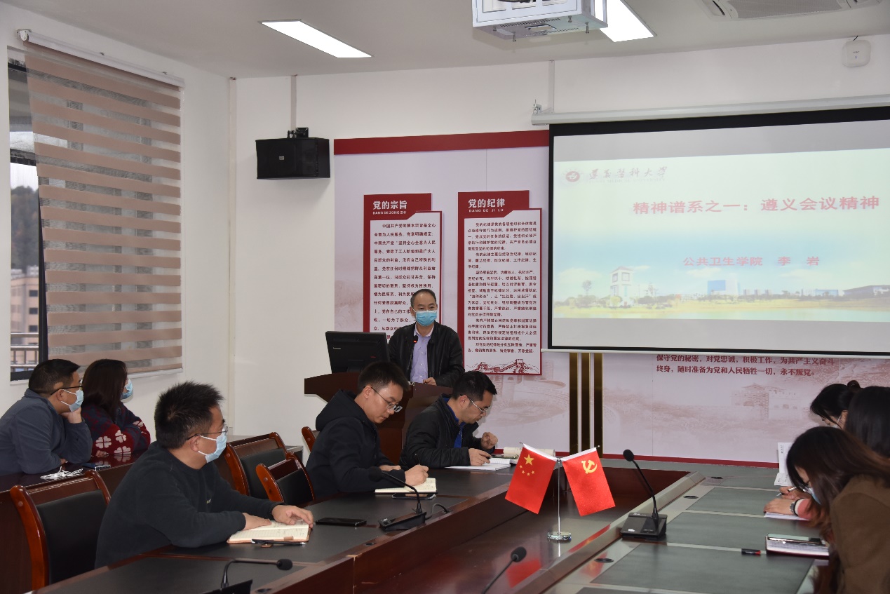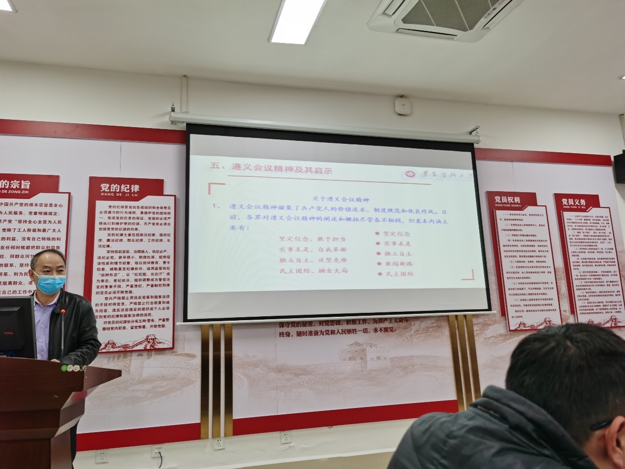 会上,李岩同志以《精神谱系之一:遵义会议精神》为题,从遵义会议的历史背景,会议经过、内容、历史地位和启示五个方面详尽地分析了遵义会议召开的迫切性、必要性、重要性和重大历史意义。遵义会议确立了毛泽东同志在红军和党中央的领导地位,开始确立了以毛泽东同志为主要代表的马克思主义正确路线在党中央的领导地位,开始形成以毛泽东同志为核心的党的第一代中央领导集体,这是我们党和革命事业转危为安、不断打开新局面最重要的保证。遵义会议精神凝集了中国共产党人的价值追求、制度规范和优良作风,其基本内涵是坚定信念、实事求是、独立自主和民主团结。