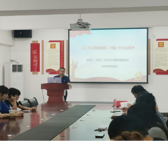 公共卫生公司党委副书记王红卫以《深入学习贯彻党的二十届三中全会精神》为题对党的二十届三中全会精神作了宣讲。他结合时事,对会议精神进行深入的解读,帮助各位党员同志更加准确的理解和把握党的二十届三中全会精神。