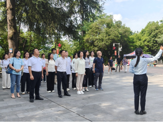 18日上午,三院师生一同前往红军山烈士陵园,在革命烈士纪念碑前,全体师生列队肃立,向为革命事业英勇献身的先烈们敬献花篮并默哀致敬。烈日下,师生们重温入党誓词并参观了红军英烈墙以及红军坟,聆听讲解员讲述他们的感人事迹。