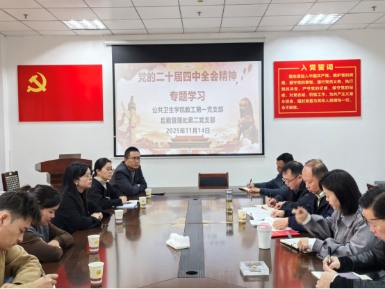 为深入学习贯彻党的二十届四中全会精神,11月14日上午,betway西汉姆官网教工第一党支部与后勤管理处第二党支部在后勤管理处党员活动室联合开展“学习贯彻党的二十届四中全会精神,联学联做促发展”主题活动。后勤管理处党总支副书记付开远,公共卫生公司党委委员、副经理刘俊以及两个支部的支部委员参加。后勤管理处第二党支部书记黄源劲主持活动。