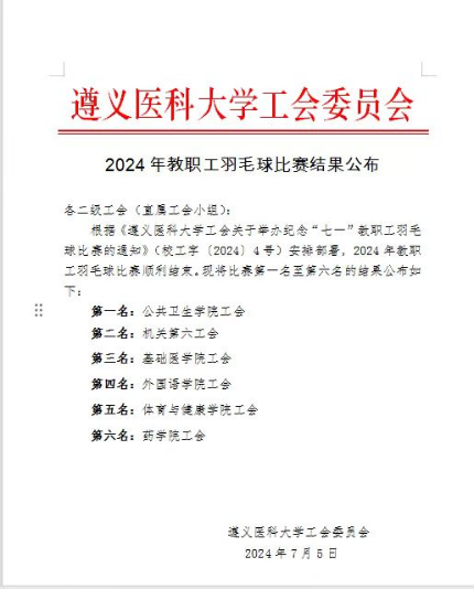 为认真落实全民健身计划行动,丰富教职工的体育文化生活,营造健康、和谐、充满活力的校园文化氛围,激励广大教职工奋进新征程、再创新辉煌。7月4日—5日,公司工会在新蒲校区北区体育馆举行教职工羽毛球比赛。betway西汉姆官网工会组织10名教职工参加比赛。