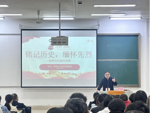 讲座中,罗开源以历史时间为脉络,系统而生动地回顾了中国人民抗日战争的艰苦卓绝历程,深刻阐释了无数革命先烈为争取民族独立和人民解放,不畏牺牲、英勇奋斗的崇高精神与坚定信念。结合丰富详实的历史资料与影像数据,进一步解读了2025年9月3日国家举行的阅兵活动所展现出的国家强大实力,深刻剖析了其背后所承载的“铭记历史、缅怀先烈,珍爱和平、开创未来”的重大意义。