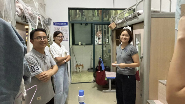 金秋九月,新学期的序幕缓缓拉开。2025年9月2日晚7点,为及时掌握同学们返校后的生活与学习情况,切实筑牢员工安全屏障,公共卫生公司党委副书记王红卫、副经理刘俊、党委委员石修权带领公司全体辅导员及员工会干部开展新学期查寝活动。