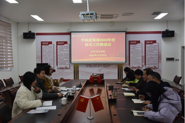 12月28日下午3:30,公司武装部部长刘承亮一行到公司调研并召开2024年度征兵工作推进会。公司党委书记张在金、副书记王红卫、本科生管理办公室人员参加会议。会议由公司党委书记张在金主持。