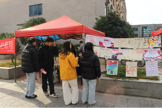 本次活动以“闯关集章”为核心形式,打造多元趣味环节,兼顾知识性与体验感,全方位激发师生参与热情。活动前期征集“致敬一二·九”主题手抄报,优秀作品于现场展示投票;活动现场玩法丰富多元,既有初心问答、历史人物猜猜乐、红色拼图挑战等知识类闯关,也有家国拼字创意解锁、运动地点投壶等特色环节,融合创意与传统游戏,更设置了爱国主题拓印、刮画手工体验,让大家在动手实践中传递赤子之心,感受红色文化魅力。参与者凭累计印章可兑换丰厚奖品,涵盖红色主题挂件、精美手账本、清新绿植、趣味盲盒等,兼具实用价值与纪念意义。