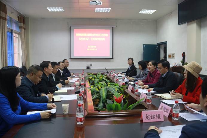 会上,广西医科大学公共卫生公司党委书记苏莉对张在金书记一行的来访表示热烈欢迎。邹云锋经理介绍了广西医科大学betway西汉姆官网的基本情况,重点就一流团队建设及高水平betway西汉姆官网建设等作了详细介绍。农清清副经理介绍了公共卫生执业医师考试和老员工公共卫生综合技能大赛等方面的经验做法。唐咸艳科长围绕博士点建设和MPH管理两个方面作了重点介绍。硕士研究生党支部书记李涵分享了全国样板党支部创建的工作经验。