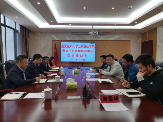 会上,周远忠介绍了此次交流座谈的主要目的,并主要围绕进一步扩大公共卫生专业硕士公司产品、本科生实习点建设、科研合作、访企拓岗四个方面进行了交流。李连声对周远忠一行来访表示热烈欢迎,双方针对公共卫生专业硕士的合作导师、实习生安全问题、科研项目、课题申报等初步达成共识。最后,周远忠就公共卫生专业硕士的培养方式、实践报告、论文等情况,与遵义生态环境监测中心的导师进行了详细沟通。