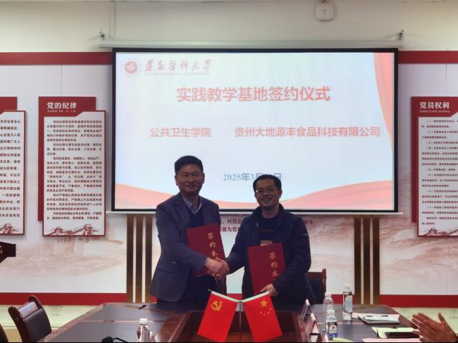 活动中,王红卫副书记首先代表公司对骆弟益总经理一行的到来表示热烈欢迎,并表示经双方前期的充分沟通,贵州大地源丰食品科技有限公司来院交流并开展专场招聘和宣讲,不但是对公司专业人才培养质量的充分肯定,更是为公司进一步提升人才培养质量给予大力的支持,希望双方以此次交流为契机,为员工教学实践培养、科学研究、毕业生就业等拓宽合作思路。随后,双方就实践教学基地建设、专硕产业导师遴选,以及公司未来科研合作等方面进行深度交流,并达成了多项共识。公司刘俊副经理与骆弟益代表双方签订了实践教学基地协议。