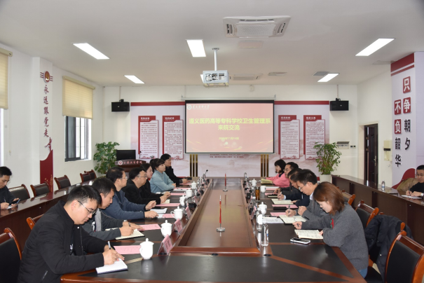 11月14日上午9:00,遵义医药高等专科公司卫生管理系来院交流。公司党委书记张在金、副经理刘俊、教务科科长王峰、食品质量与安全专业负责人张孝刚,遵义医药高等专科公司卫生管理系党总支书记郑传清、主任卢远兴、副主任陶婷婷、教学科研办主任蒋纬、员工科科长刘彦君、食药监教研室主任何鸿、教务科工作人员、本科班专职实验员周鹏,以及两校食品相关教研室教师代表参加了会议。会议由刘俊主持。
